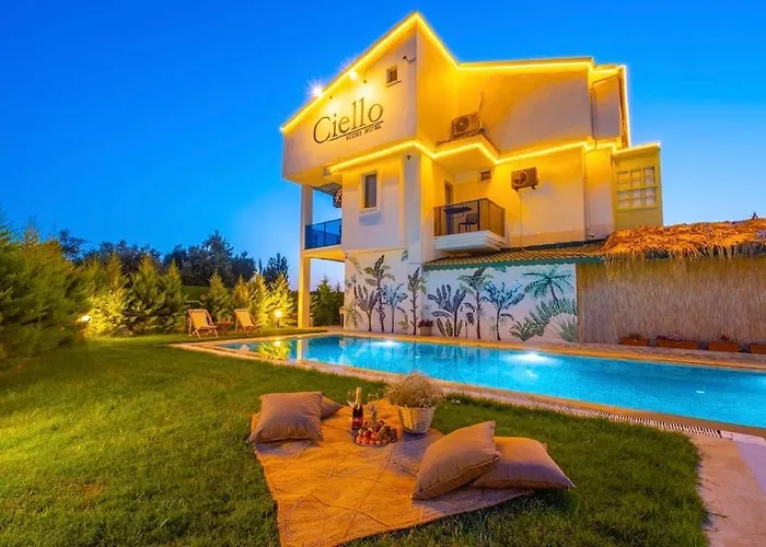 Karaot Beach'den 4 km uzaklıkta yer alan Ciello Suites Hotel Fethiye, misafirlerine 24-saat güvenlik, döviz bürosu sunar.